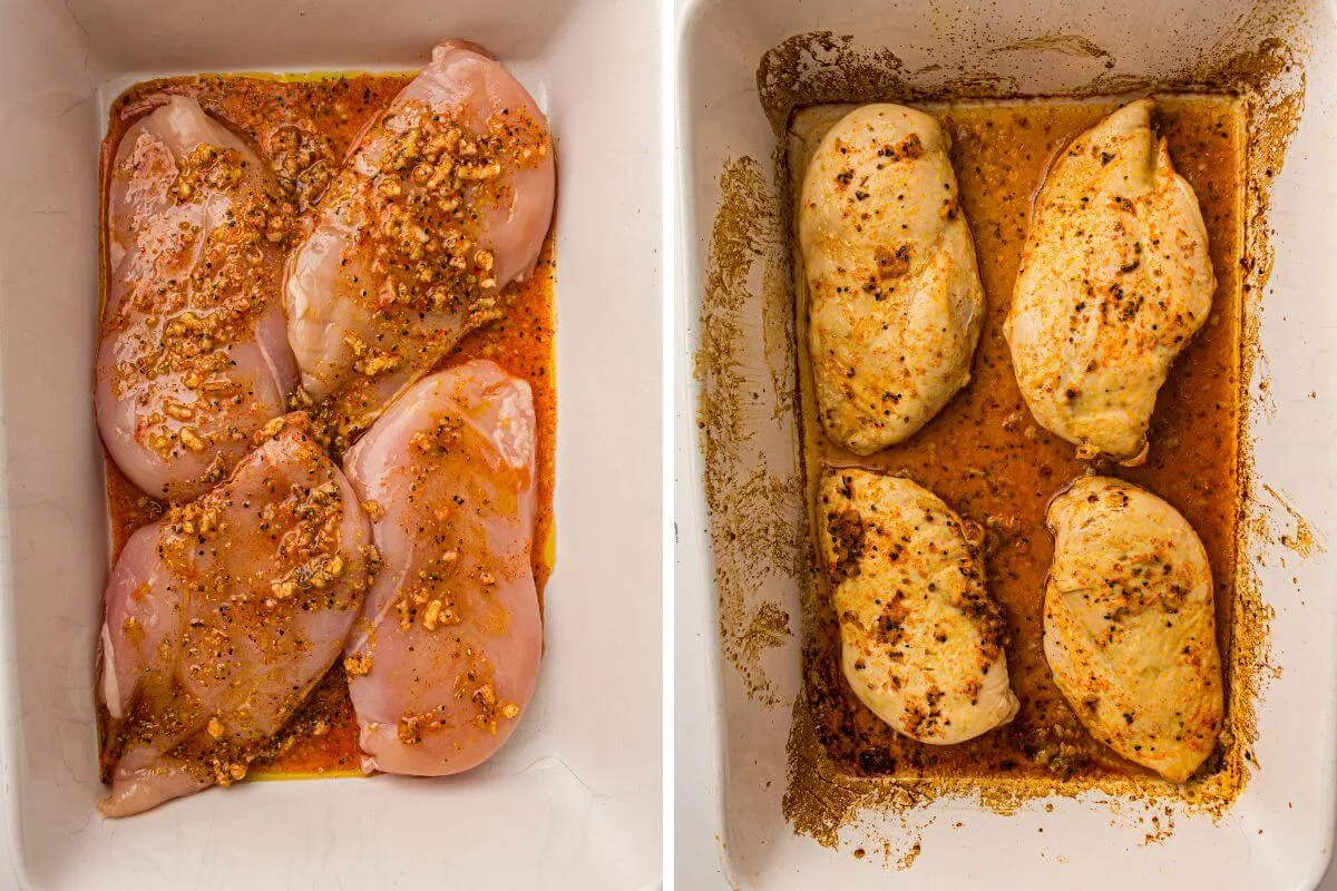 - Transfer the chicken to a baking dish, arranging it in a single layer.