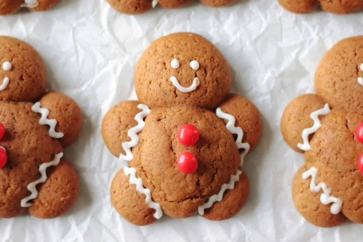 Skip the cookie cutters and make these chubby gingerbread man cookies by rolling the dough into balls. They're a cute Christmas cookie.