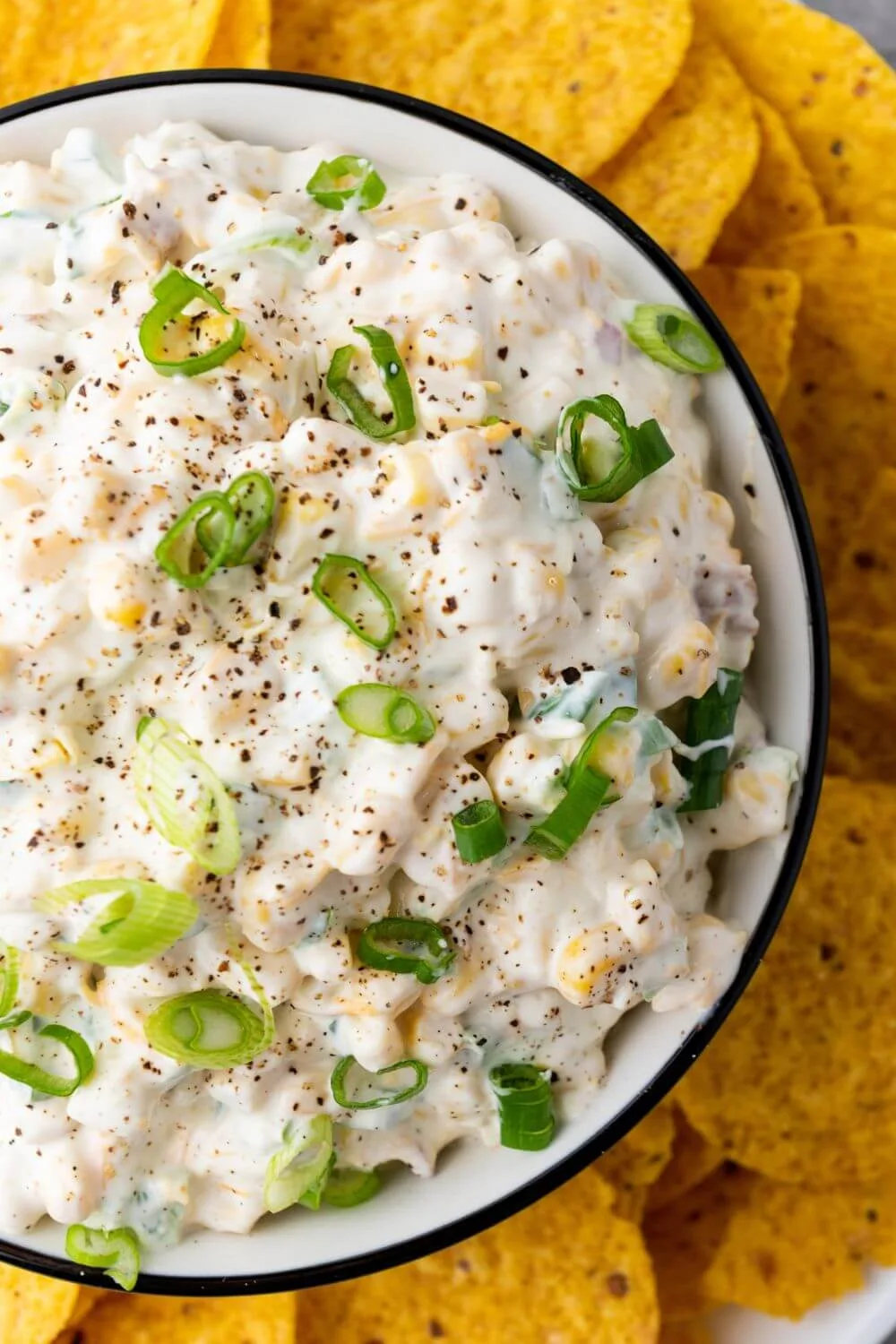 This Cold Mexican Corn Dip is perfect with tortilla chips, but it also works well as a topping for tacos, burrito bowls, or grilled chicken. Set it out with other easy appetizers for a party spread or keep it in the fridge for easy snacking throughout the day.