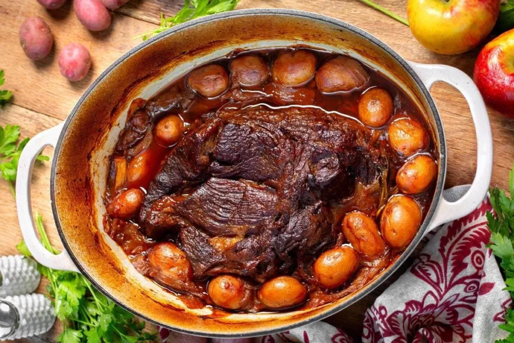 Tender seared pot roast with veggies and a creamy apple cider base that soaks right into meat. It's a hearty roast that'll be a family favorite.