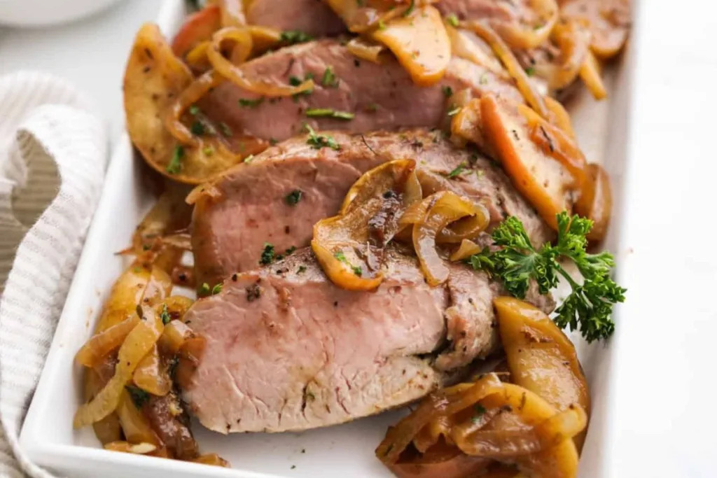 A port tenderloin, apples, onions, and fragrant herbs come together to make a meal that'll become a fall favorite. It's sweet and savory.