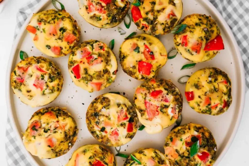Egg bites made with spinach, veggies, and bacon is a meal prep friendly school lunch that's easy to put together for the kids.