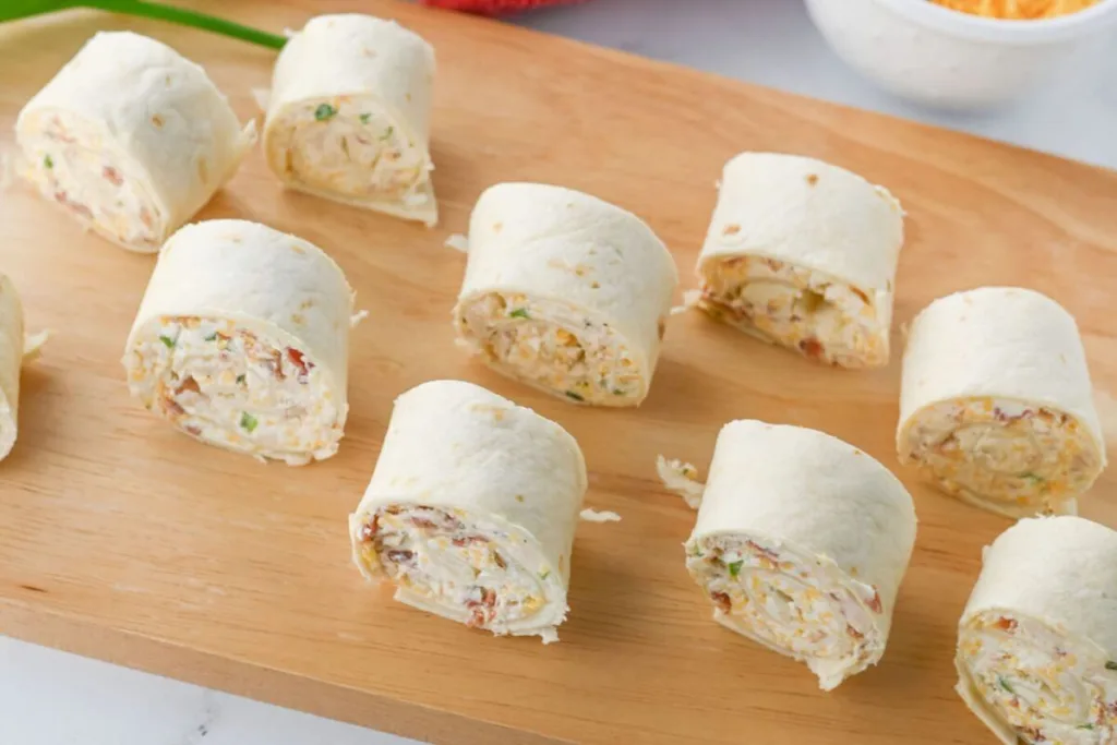 With layers of turkey, lettuce, cheese, and bacon, these pinwheels are easy to make. Inside the filling is a spicy sun dried tomato sauce that brings it all together.