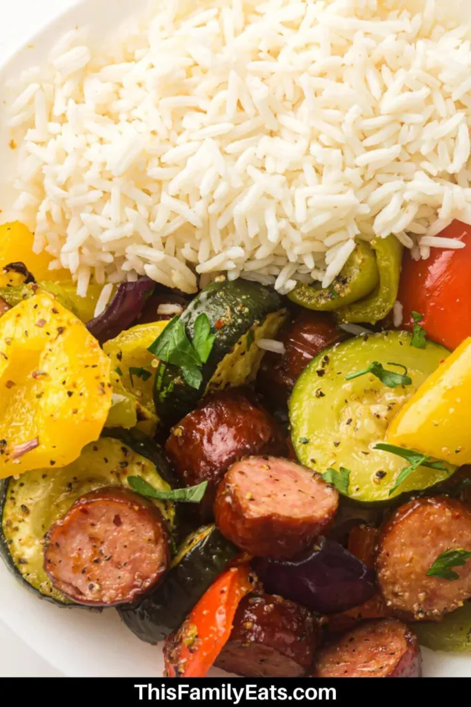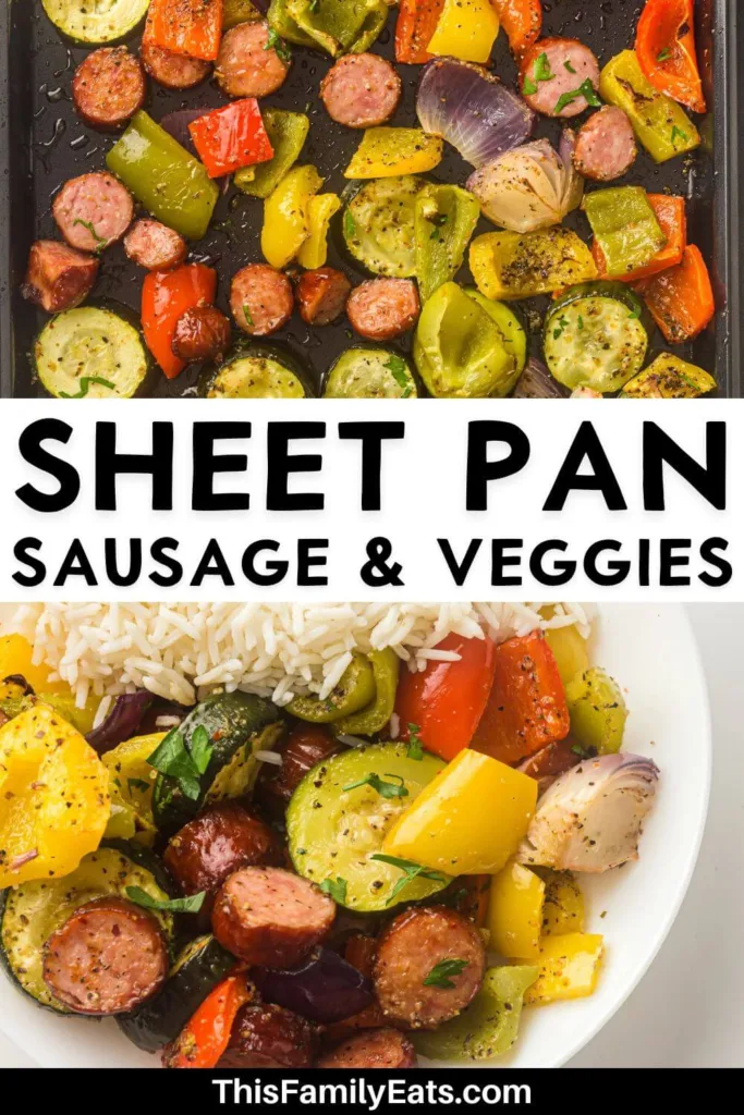 This sheet pan smoked sausage and vegetables is a quick and easy dish that's perfect for busy weeknights. It's made with simple seasonings, colorful veggies, and smoked sausage.