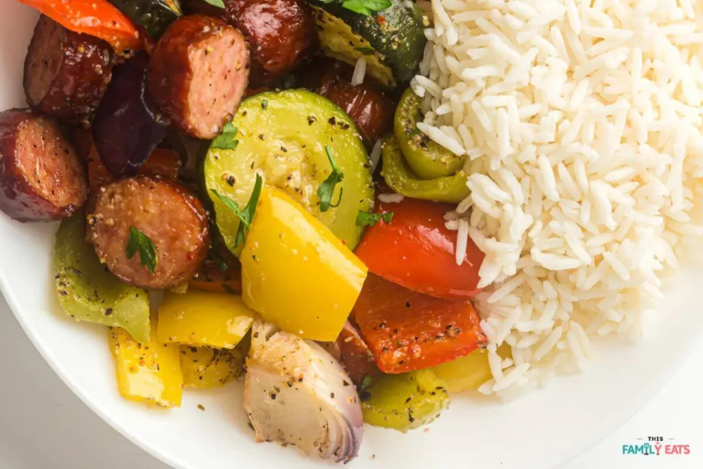 Rice is always a good option for serving with smoked sausage and vegetables. You can also pair it with mac and cheese for the kids or a simple side salad.